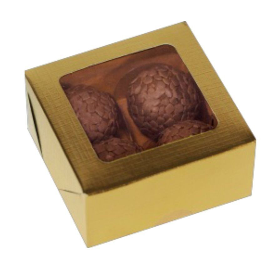 10~50 CAIXA LAMINADA C/ VISOR (04 DOCES) 4x8x8 cm OURO ID4668