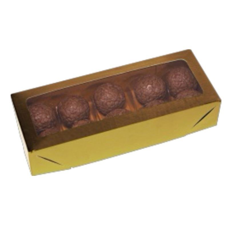 10~50 CAIXA LAMINADA C/ VISOR (10 DOCES) 4x20x8 cm OURO 4672