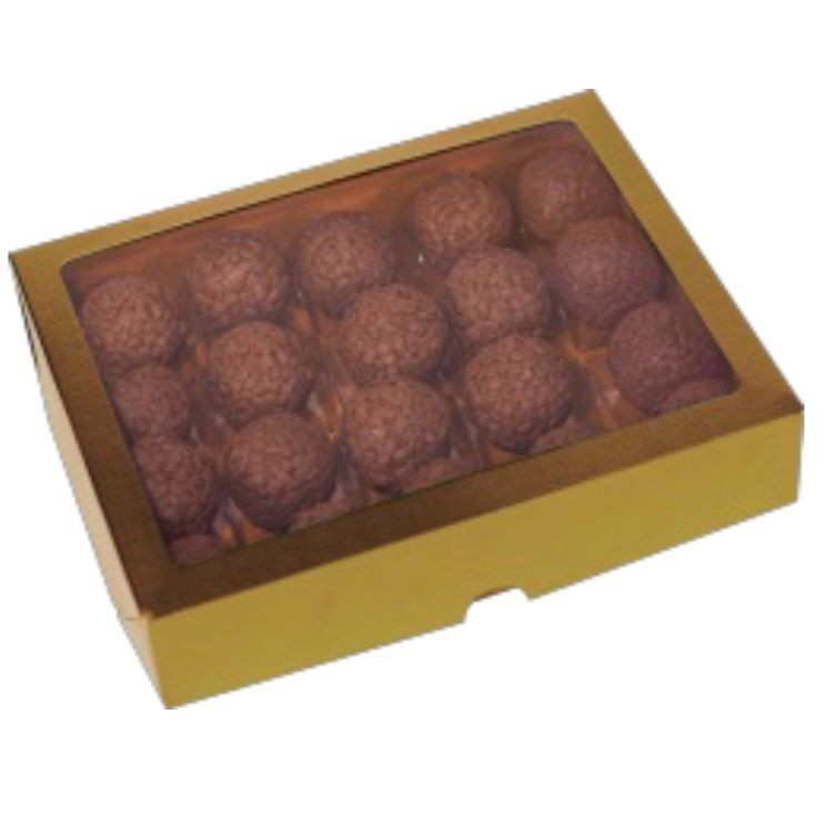 10~50 CAIXA LAMINADA C/ VISOR (20 DOCES) 4x20x16 cm OURO 4676