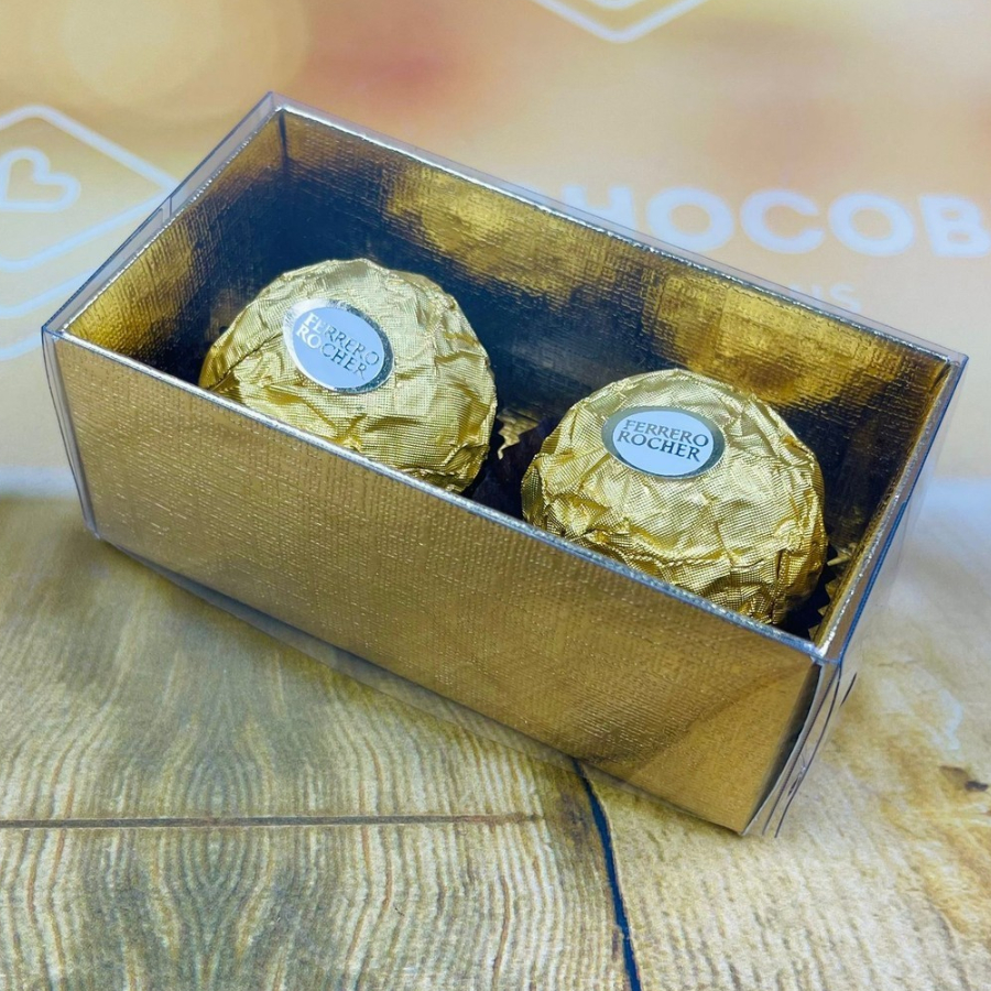 10~50 Caixa Textura Laminada com Visor PVC2 - ASSK - PARA DOIS DOCES COR : OURO MEDIDAS 8,5X4,5X3,5