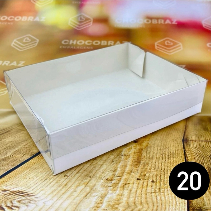 10~50 CAIXA P/ 20 DOCES BRANCA C/ TAMPA ACETATO 17X14X4 5060 (IDEIA) ESSENCIAL