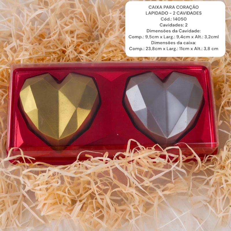 10~50 CAIXA PARA CORAÇÃO LAPIDADO BWB 2X 200G VERMELHO 14052 MÃES E NAMORADOS 2025 CAIXA P/ COR. LAP. (200 G) C/ 2 CAVIDADES – VERMELHO ACESSÓRIOS | EMBALAGENS PARA DOCES CÓD: 14052 DIMENSÕES DAS CAVIDADES: COMP.: 95 MM X LARG.: 94 MM X ALT.: 32 MM