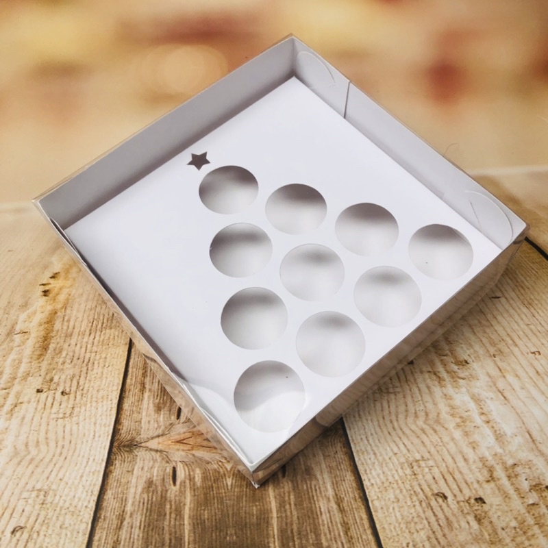 10~50 caixas 10 doces arvore de natal MOLDURA com berço branca tampa com visor 15x15x5 ASSK