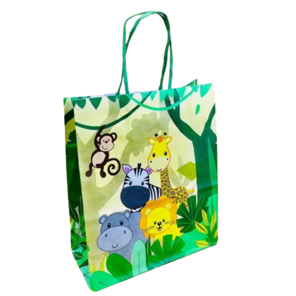 SACOLAS ESTAMPADAS SAFARI BABY (LC) Material: Papel Kraft Medidas: 17,5 x 8,5 x 21,5 - As Sacolas podem ser usadas para presentes, vendas ou para o uso de sua preferêcia. - Alça reforçada. - Impressão de qualidade. ATENÇÃO: - Quantidade no título do anúncio.- Confira o prazo de envio no ato da compra.