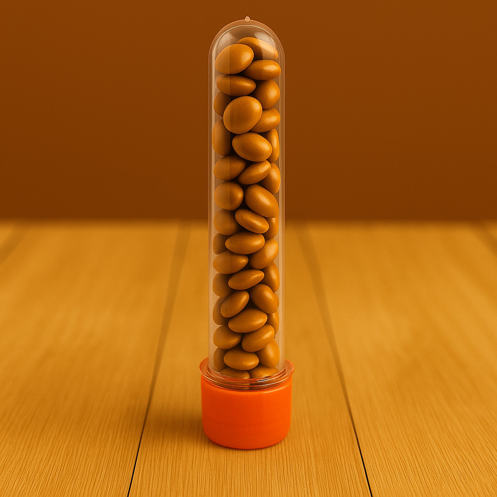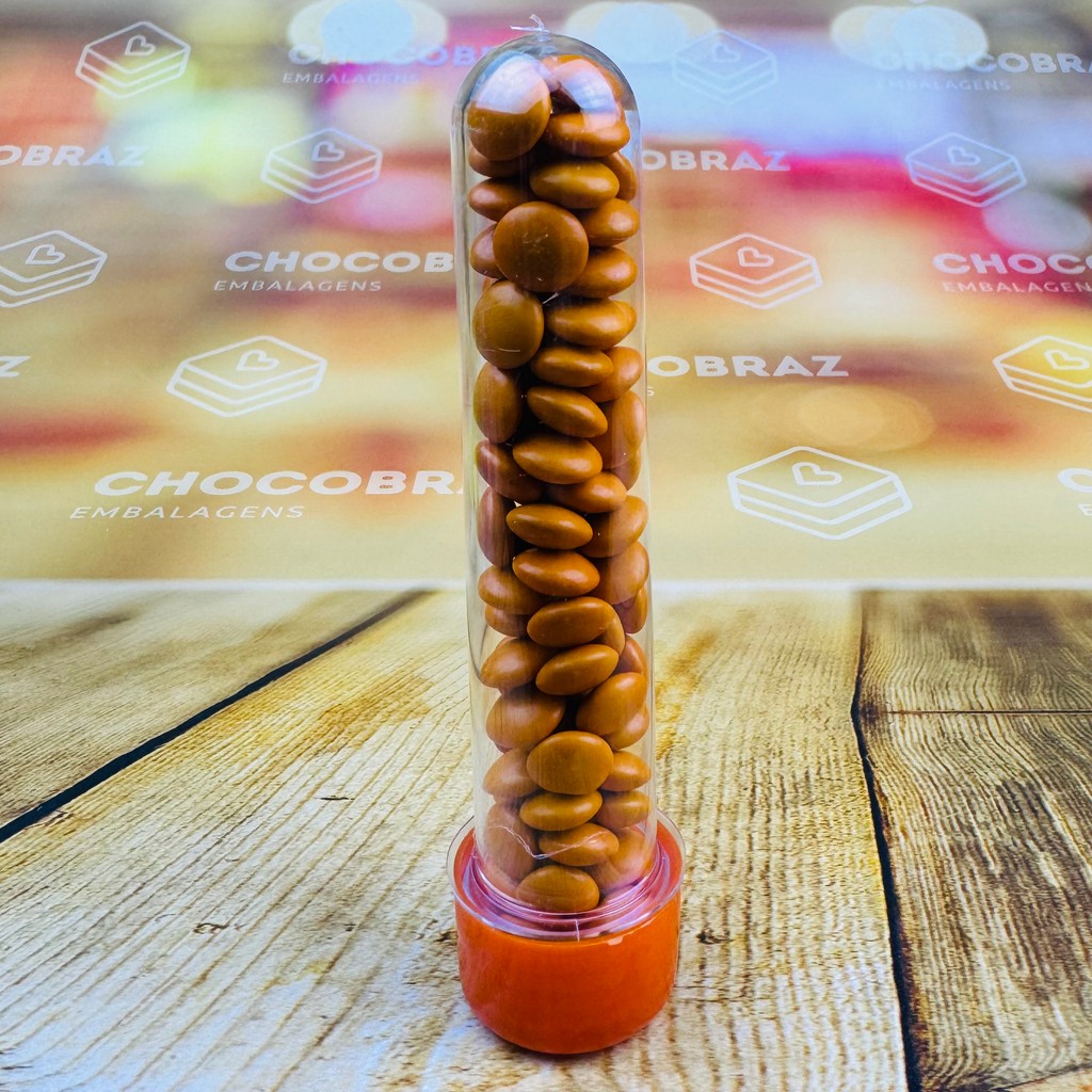 10~50 TUBETE ACRÍLICO LEMBRANCINHAS 13CM COM TAMPA LARANJA (CHOCO)