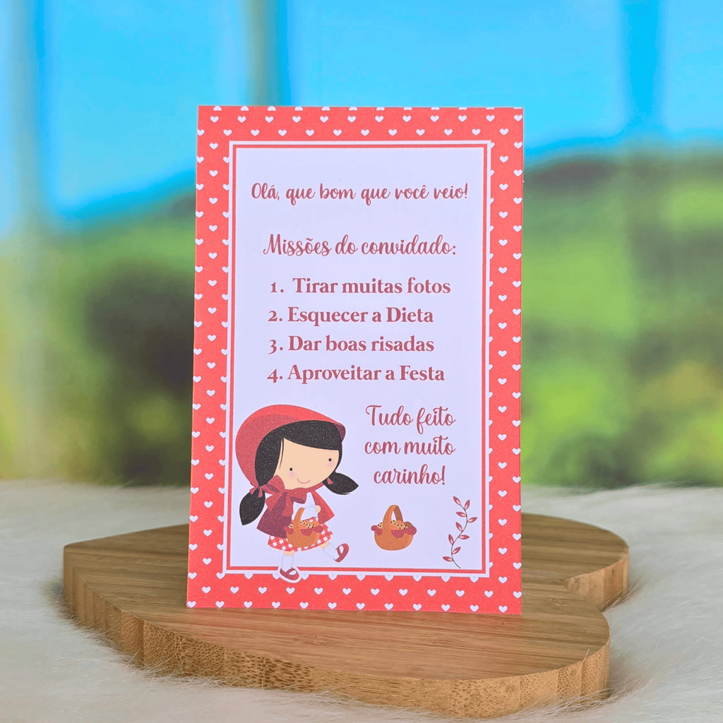 | 10 a 30 Plaquinhas de mesa CHAPEUZINHO VERMELHO CUTE - Centro de me... este produto | R$ 18,62 | 51% | 4.9/5 | — |