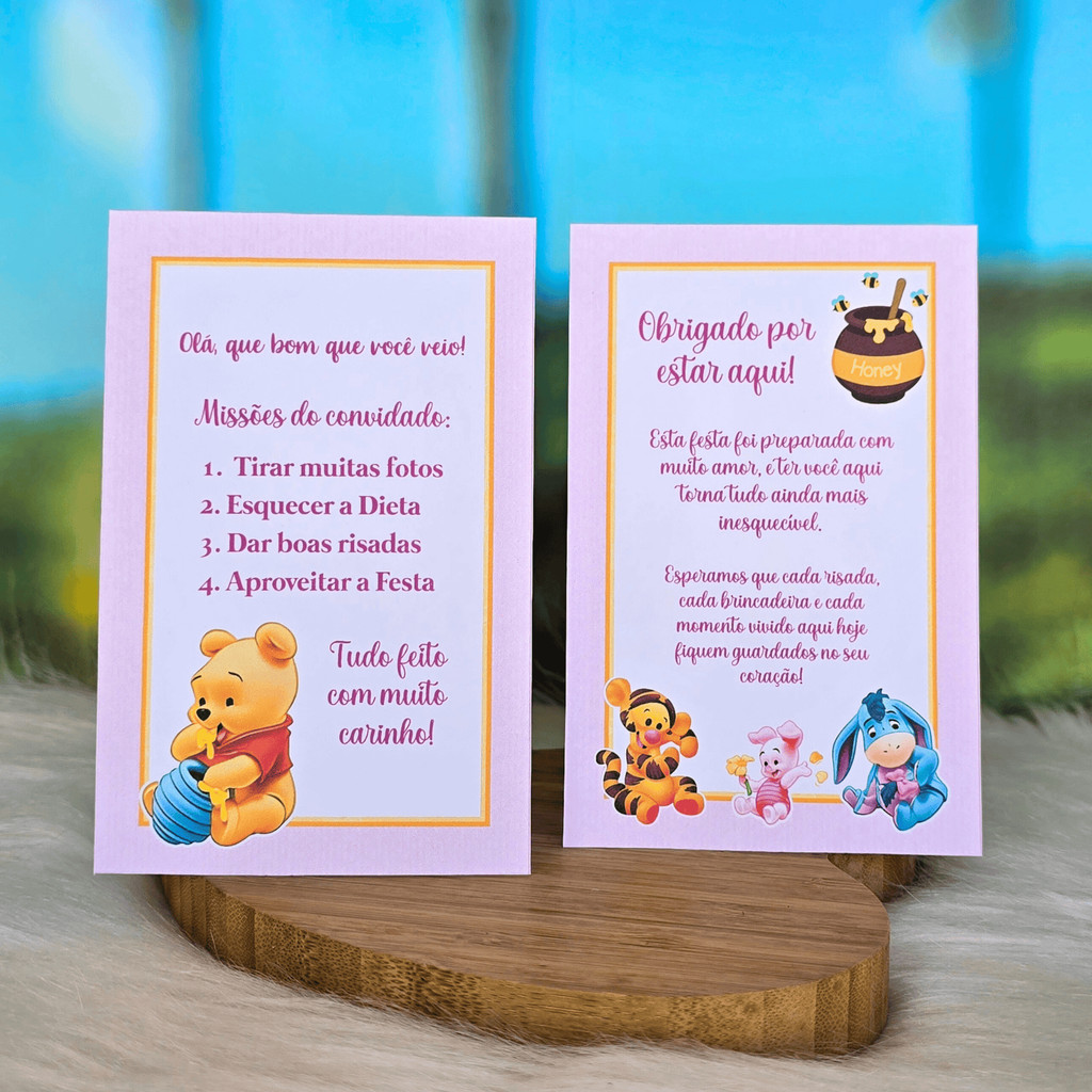 10 a 30 Plaquinhas de mesa URSINHO POOH BABY ROSA menina - Centro de mesa Lembrancinha de festa infantil