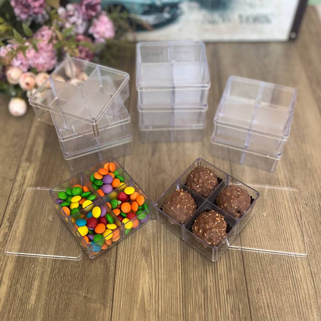 10 A 50 UNIDADES - Caixa Acrílica Quadrada com 4 Divisórias 7x7 - Personalizados Decoração de Festas