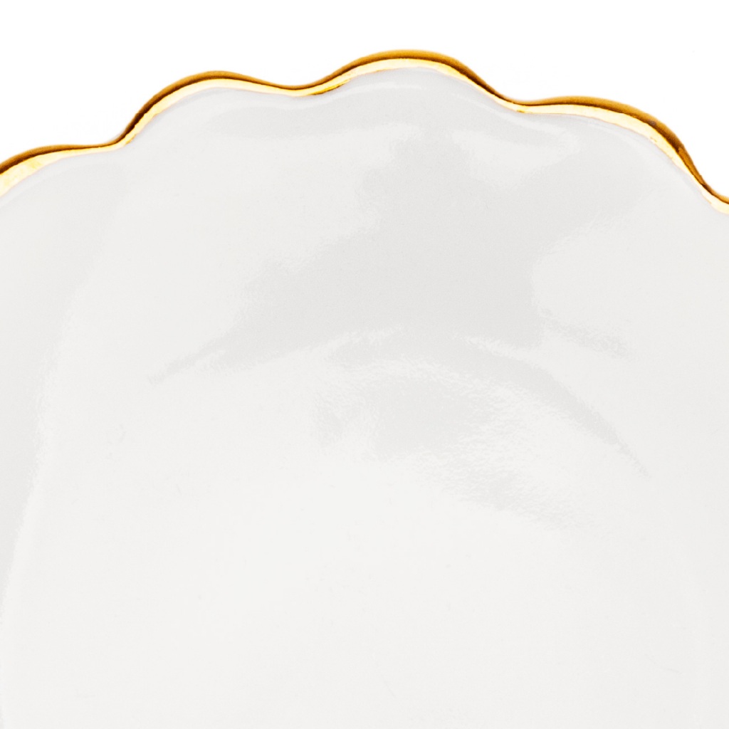 Peça tradicional em porcelana de primeira linha, com acabamento fino e riqueza nos detalhes, o filete da borda é confeccionado em Ouro 12K. Dimensões aproximadas do produto: Altura: 1,4 cm Diâmetro: 9,5 cm ATENÇÃO: POR SER TRATAR DE PEÇAS ARTESANAIS, FEITAS UMA A UMA MANUALMENTE, PODE HAVER VARIAÇÃO DO TAMANHO DA PEÇA. PERGUNTAS FREQUENTES Atendemos pedidos personalizados com pedido mínimo de 25 unidades Prazo de produção: 30 dias corridos. A peça é em porcelana de primeira linha? R: Sim, a peça é de porcelana de primeira linha. O acabamento é fosco ou brilhante? R: Nossa peça é esmaltada, portanto o acabamento é brilhante. A peça pode ser levada ao forno? R: Sim, suporta temperaturas até 750°C. Serve para sublimação? R: Sim, porém nossa porcelana não é resinada. Tem alguma dúvida que não está especificada aqui? Estamos disponíveis através do campo de perguntas para atendê-los! Nossa empresa é pioneira no seguimento de miniaturas em porcelana branca e personalização de lembrancinhas há mais de 28 anos, nossa linha de produtos conta com as mais variadas peças como: Porta Joias, Mini Bandejas, Canecas, Mini Xícaras e Mini Mugs, Tigelas, Bowls, Manteigueiras, entre outros. A Porcelana Criativa deseja boas compras!