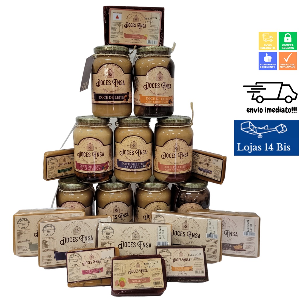 10 Barras Doce de Leite 100g Sabores Variados Sem Glúten Ensa Sul de Minas Doce de leite em barra sabores variados e feito com leite direto da fazenda, no Sul de Minas Gerais. Produto fresco e delicioso, feito com leite fresco de fazendas próximas a fabrica além de utilizar frutas selecionadas e ingredientes de qualidade para a produção dos doces, como chocolate de ótima qualidade. Fabrica artesanal também no Sul de Minas, na região produtora de doces de Pedralva, Itajubá e Maria da Fé. Com uma gama de variedades do mais gostoso doce de leite do Sul de Minas, estou certo que um ou todos os sabores irão de agradar!!! Em barra para você se deliciar a qualquer momento do dia, ou durante o dia com pequenas porções, para usar nas suas receitas do dia a dia, festas, ou até mesmo para servir em restaurantes, bares, lanchonetes e padarias. ==> Doce de Leite Puro Ingredientes: - Leite - Açúcar - Glicose de Milho - Estabilizante - Bicarbonato de Sódio *Não contém glúten **Alérgicos: - Contém Lactose ==> Doce de Leite com Morango Ingredientes: - Leite - Açúcar - Morango em pó - Estabilizante Bicarbonato de Sódio *Não contém glúten **Alérgicos: - Contém Leite ==> Doce de Leite com Amendoim Ingredientes: - Leite - Açúcar - Amendoim - Estabilizante - Bicarbonato de Sódio *Não contém glúten **Alérgicos: - Contém Leite - Contém Amendoim ==> Doce de Leite com Ameixa Ingredientes: - Leite - Açúcar - Ameixa desidratada sem caroço - Estabilizante - Bicarbonato de Sódio *Não contém glúten **Alérgicos: - Contém Leite ==> Doce de Leite com Chocolate Ingredientes: - Leite - Açúcar - Chocolate em pó - Estabilizante - Bicarbonato de Sódio *Não contém glúten **Alérgicos: - Contém Leite ==> Doce de Leite com Coco Ingredientes: - Leite - Açúcar - Coco Ralado Desidratado - Estabilizante - Bicarbonato de Sódio *Não contém glúten **Alérgicos: - Contém Leite - Contém Amendoim => Após aberto, manter em geladeira. Conteúdo do anúncio: - 10 unidades de 100g do sabor escolhido Marca: Doces Ensa *** ENVIO IMEDIATO *** Pedidos confirmados até as 10 horas da manhã em dias uteis são postados no mesmo dia.