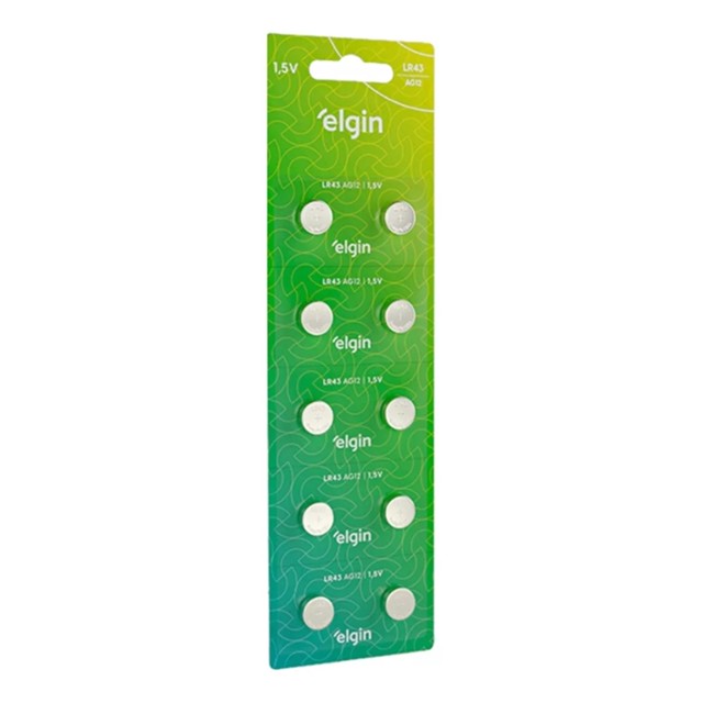 10 Baterias Pilha Botão Lr43 1,5V Ag12 1 Cartela Elgin