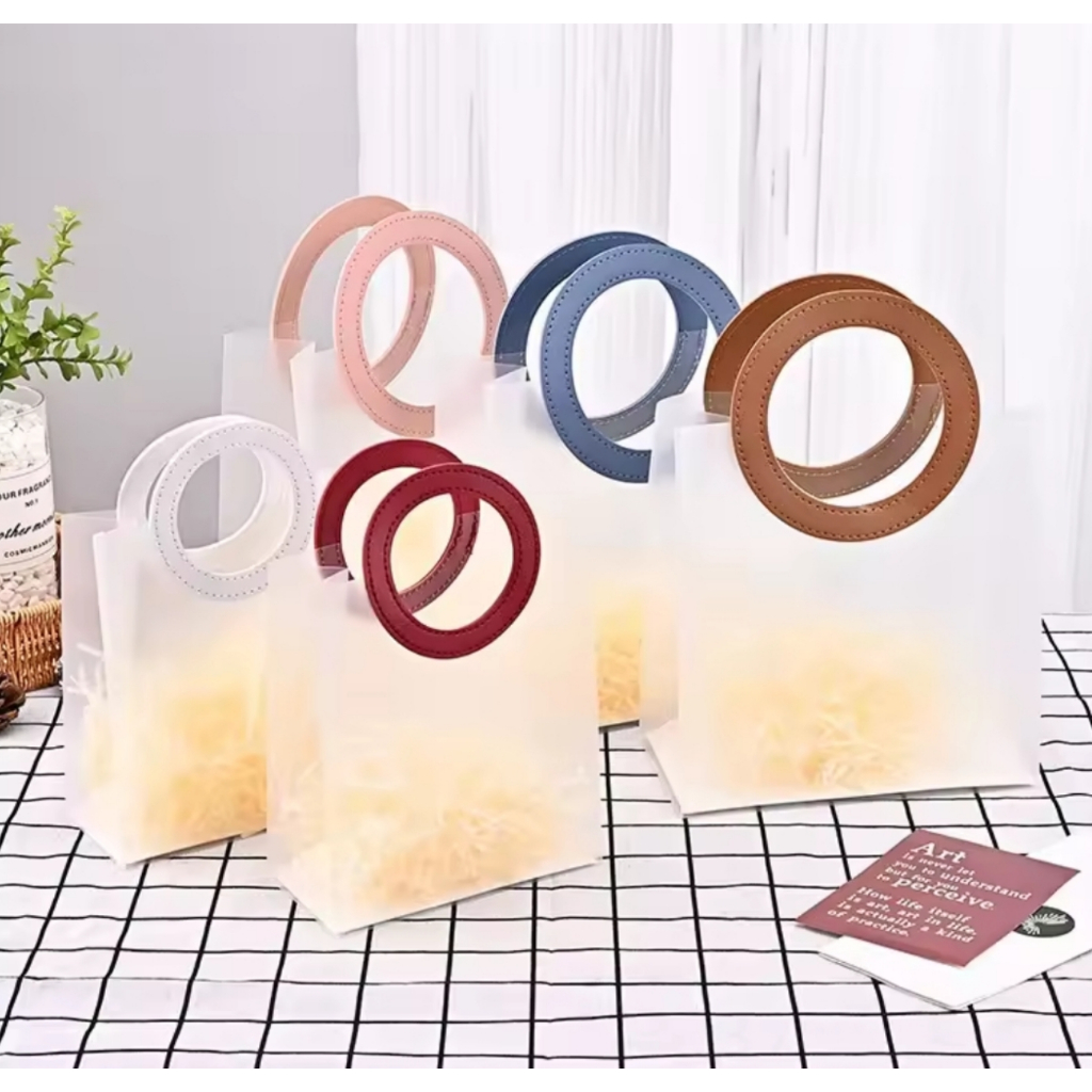 10 Bolsas Sacola Plástica De Presente Fosca Alça Redonda Em Cores 3 Tamanhos