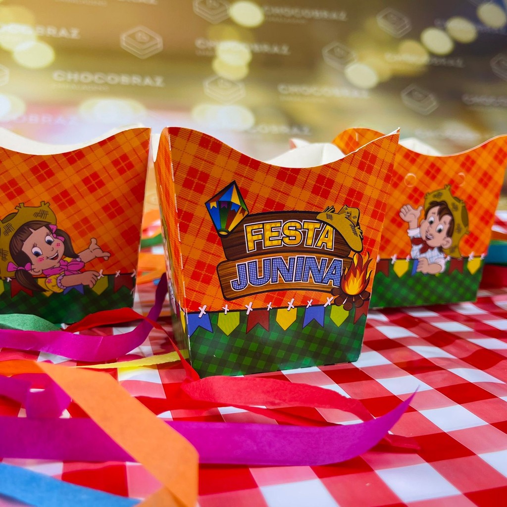 CACHEPÔ 9x9x7 Dica: utilize para personalizar os centro das mesas dos convidados ou para servir docinhos e salgadinhos!. Tema/Cor: Festa Junina Material Papel cartonado personalizado Tamanho 9 x 9x7 cm Embalagem com 10 unidades
