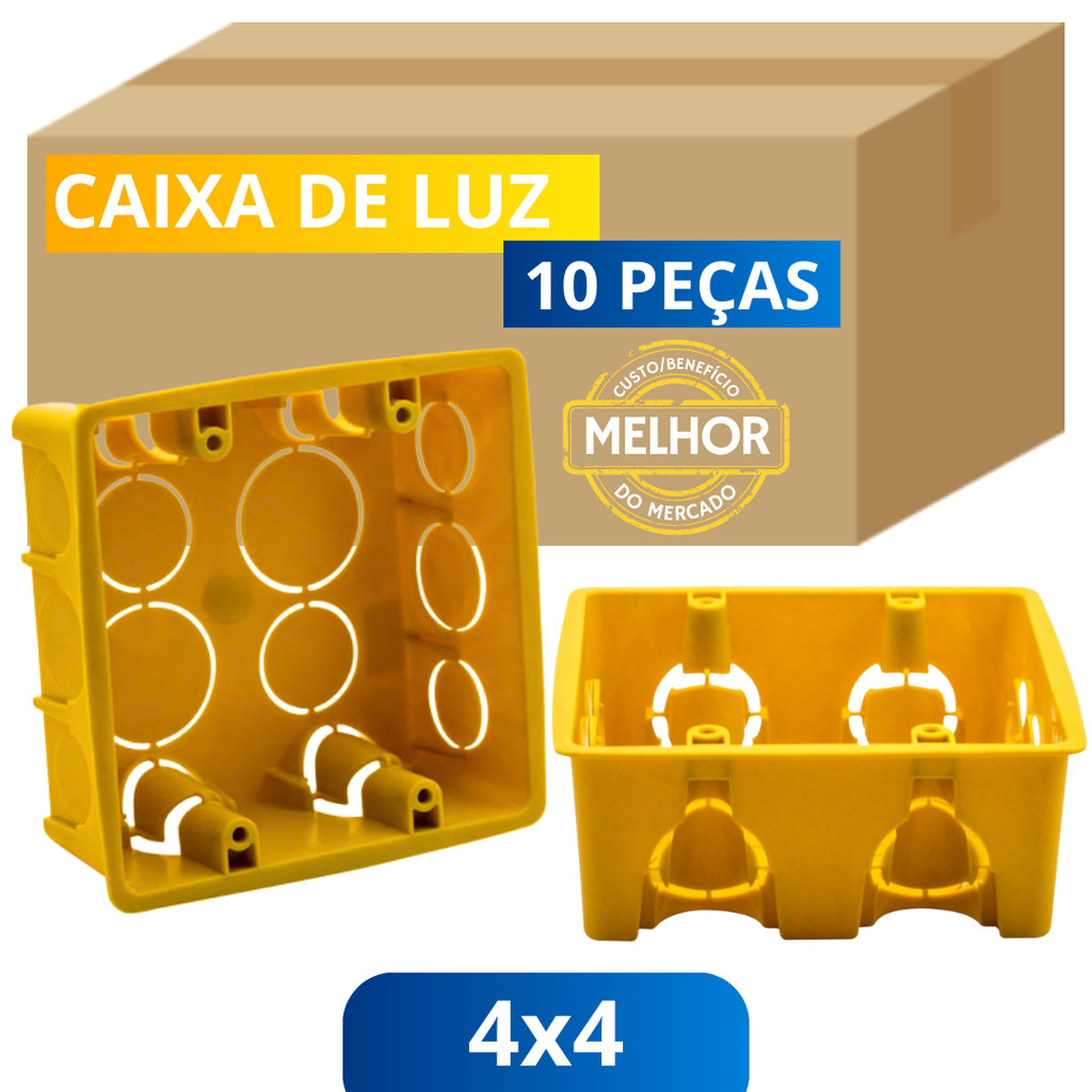 💡 CAIXA DE LUZ 4X4 REFORÇADA Vai fazer uma obra ou reforma? Vamos fechar com o time Meu Ape Store , trazendo um dos melhores custo benefício do mercado e tambem uma incrivel novidade! Adquira o Conjunto de Caixas de Luz 4x4 Reforçadas e garanta a segurança, resistência e praticidade para suas instalações elétricas. Ideal para ambientes residenciais, comerciais e industriais, essas caixas são perfeitas para acomodar interruptores, tomadas e outros dispositivos elétricos, oferecendo suporte robusto e proteção contra impactos e deformações. 📌 INFORMAÇÕES DO PRODUTO TAMANHO: 4x4 MATERIAL: Fabricada em PEAD de Alta Qualidade e Durabilidade COR: Amarela ou Preta QUANTIDADE: 10 Caixas de Luz 4x4 🧾 PRODUTO NOVO E COM NOTA FISCAL ❓ ALGUMA DÚVIDA? NÃO DEIXE DE NOS ENVIAR SUA PERGUNTA QUE RESPONDEREMOS O MAIS RÁPIDO POSSÍVEL!
