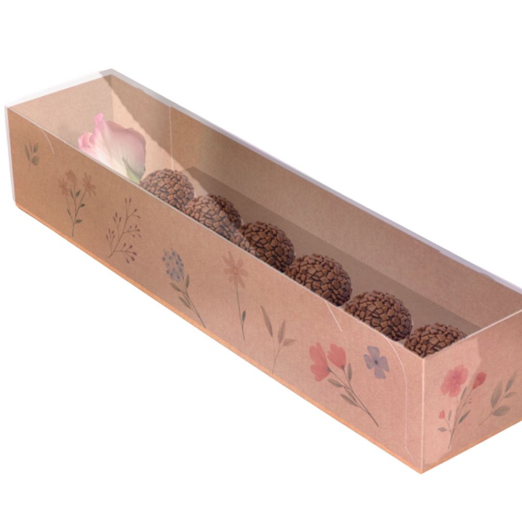 CAIXA FLOR E DOCES Tamanho da embalagem montada: 32X7X6 cm Papel kraft As caixas possuem um design único e de fácil montagem. Podem ser utilizadas para embalagem para doces e mimos. ATENÇÃO: - Quantidade no título do anúncio. - Não inclui ovos de chocolate, doces e chocolate (apenas embalagem). - Não personalizamos, cores e temas apenas como está na foto. - CONFIRA O PRAZO DE ENVIO NO ATO DA COMPRA. - A caixa é enviada desmontada para a preservação do produto e otimização e de custo de frete.