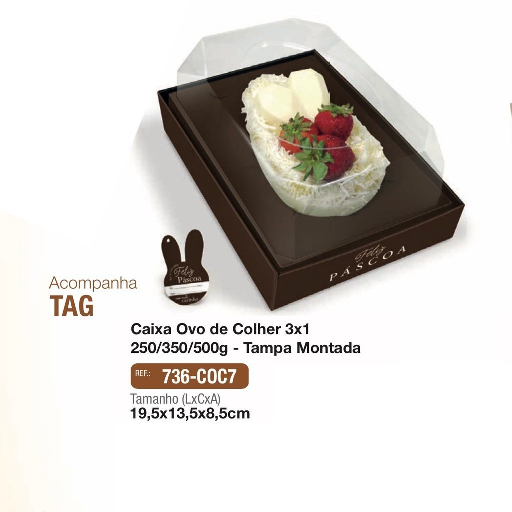 10 CAIXA OVO DE COLHER PÁSCOA 3X1 250/350/500G-C/ TAMPA MONTADA- JR COC7 MARROM