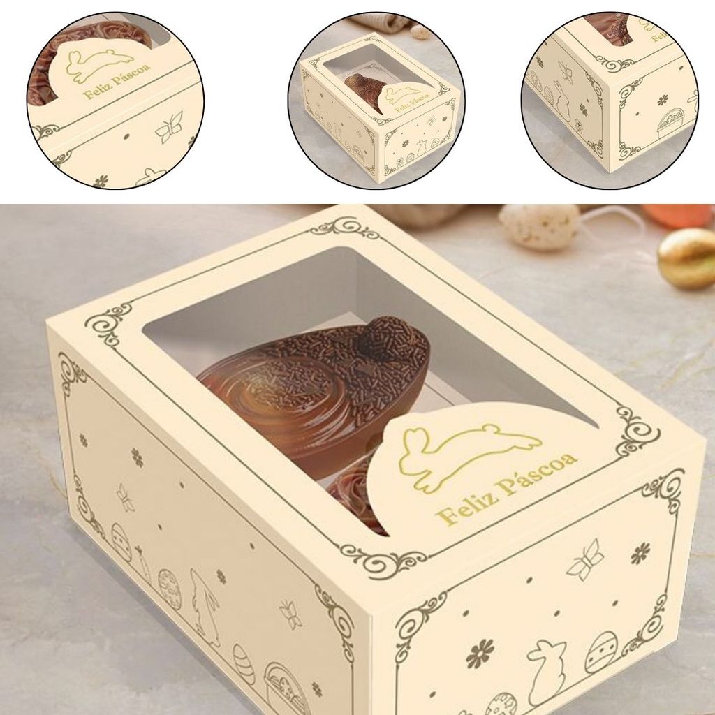 A Caixa Gaveta da linha Páscoa Luz é elegante e versátil. Com estrutura reforçada e detalhe em hot stamping ouro, oferece uma apresentação refinada para produtos artesanais. O produto acompanha um berço versátil, que permite escolher entre duas opções de montagem: acomodar um ovo de colher de 250 a 350g ou dois mini ovos de 150g, perfeitos para diferentes composições de Páscoa. Basta escolher a forma que melhor combina com sua produção. Medidas cm (CxLxA) 19,2x15x8,9 Material Papel, Tinta e Plástico Sugestões de uso Ideal para ovos de colher, doces, bombons, cookies, trufas ou produtos artesanais. Diferenciais Estrutura firme e durável; Visor transparente; Edição limitada e detalhe em hot stamping ouro.
