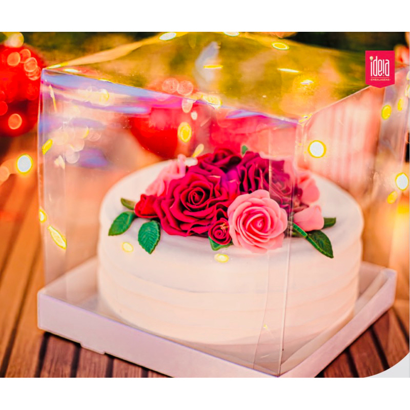 10 CAIXA PARA BOLO COM TAMPA EM ACETATO 20x20x20 QUADRADA COM VISOR