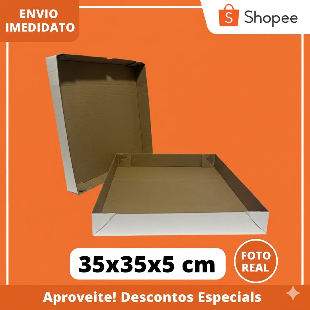 10 Caixas de Papelão Doce/Salgados Auto Montável (MELHOR PREÇO) - 35x35x5 * Produto 100% Reciclável * Biodegradável * Pronto Entrega Gramatura: 415g -> CAIXAS PARA ARMAZENAR DOCES/SALGADOS <- -> Fácil para montar e desmontar <- A gente já sabe que uma boa experiência de compra online é composta por diversos fatores. Um dos principais é a embalagem. Receber uma embalagem bem apresentada e resistente conta muitos pontos para quem consome. E se, além de carregar uma encomenda tão aguardada, essa embalagem valorizasse sua marca e ainda ajudasse o planeta? Nosso Produtos são exatamente assim: segura e sustentável. As embalagens são recicladas, 100% recicláveis e biodegradáveis, feitas a partir de fontes renováveis, além de garantir um produto de alta qualidade, ajudamos a natureza. Com nossa Ampla Linha de produtos, nossas soluções estão a um clique do seu negócio. E o melhor, em quantidades na medida para a sua operação, com opções prontas para uso ou lisas - que você pode personalizar com seus adesivos, carimbos ou impressões. Muito Importante lembrar, que para algumas quantidades temos produtos com Fretes Grátis! Medidas: 35 x 35 x 5 cm Material: Papelão Ondulado feito com papel de alta resistência e 100% reciclado. Você tem alguma dúvida ? entre em contato via chat de mensagem! Temos uma Equipe disponível no chat para lhe fornecer informações :D