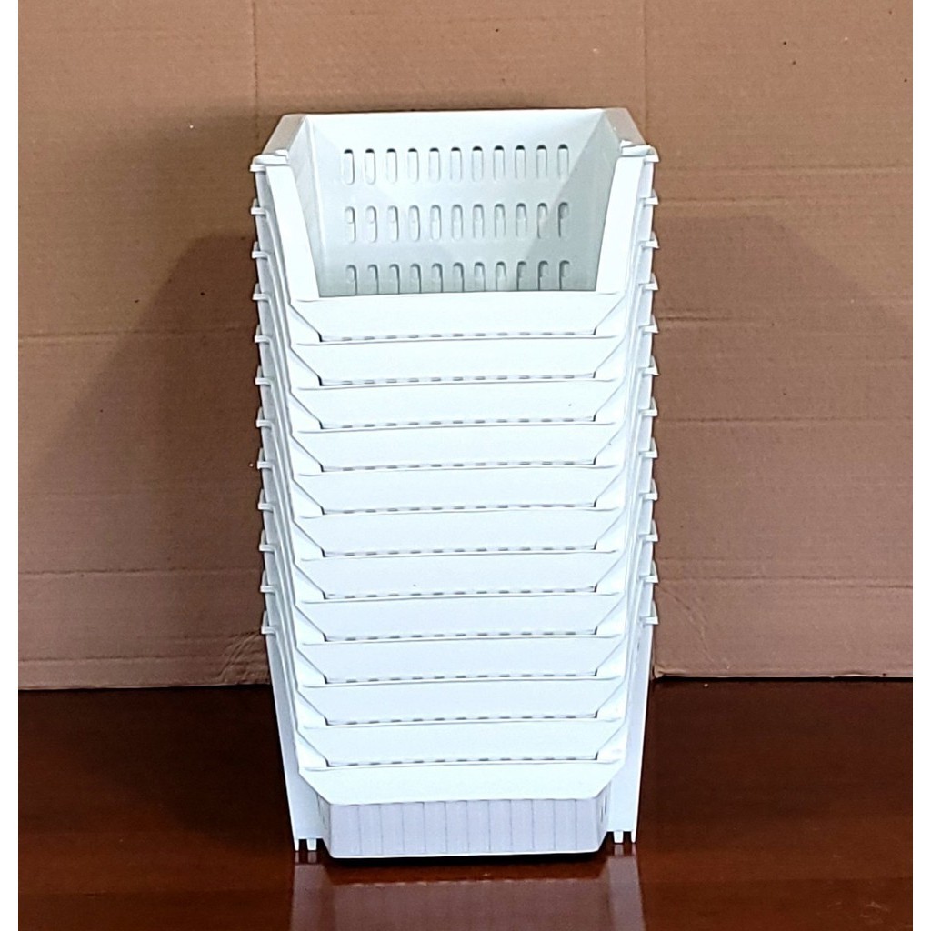 Cesto Expositor Prático de Plástico Resistente - Kit 10 Unidades COMBO COM 10 UNIDADES DIMENSÕES: Largura: 21 cm Altura: 13 cm Profundidade: 25 cm DESCRIÇÃO: O Cesto Expositor Prático Embalagem 10 unidades é a solução inteligente para exposição e armazenamento dos mais diversos itens em estabelecimentos comerciais tais como: drogarias, perfumarias entre outros. Seu diferencial é a embalagem supercompacta que reduz consideravelmente o espaço ocupado no estoque. VANTAGENS: Mais compacto que o modelo tradicional; Pés desencaixáveis: menor custo de frete e menos espaço no estoque; Embalagem com volume até 70% menor que a dos cestos convencionais; Empilha verticalmente; Suporta: 5 kg por cesto; Produzido em polipropileno; Maior vão entre os cestos.