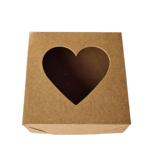 10+ Caixas KRAFT 4 doces com visor coração 7,5x7,5x3 cm.