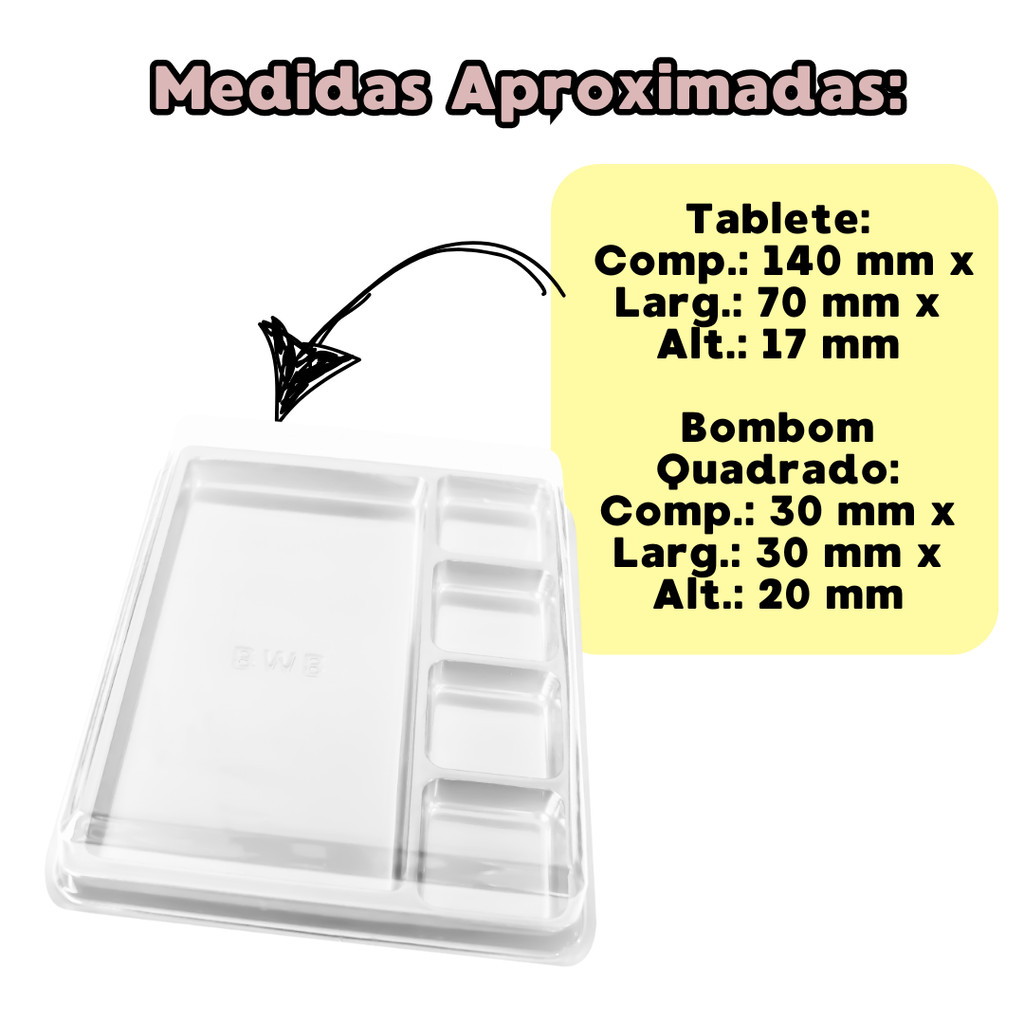 10 Caixas Para Tablete E Barra Com 4 Cavidades Bombom Quadrado Trufa Gourmet BWB