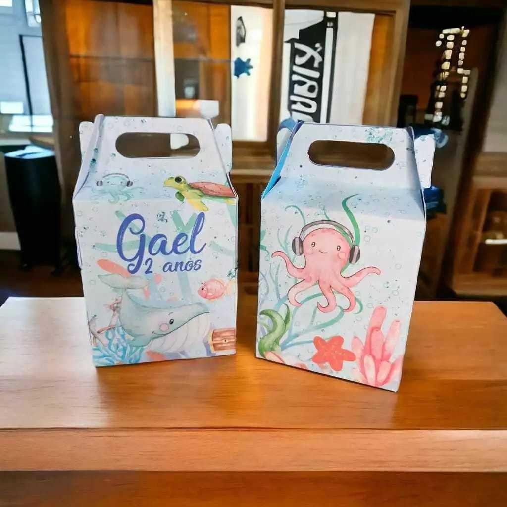 10 Caixinhas Surpresa Personalizadas Festa Fundo do Mar Aquarela menino