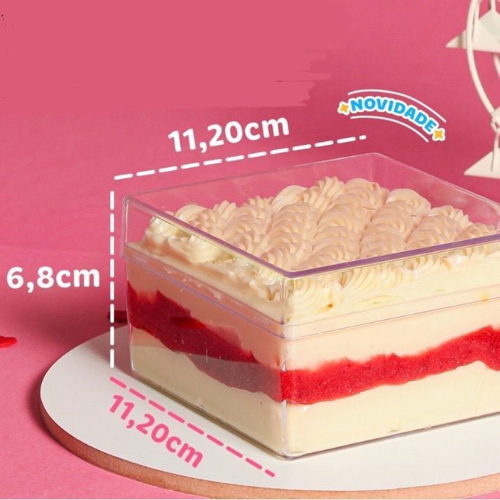 Cake Box Cristal REDONDA 500ml Perfeitas para evidenciar as camadas dos doces! Resistente - feita em poliestireno cristal (mais durável do que acrílico!) Transparente - Assim seu cliente pode ver tudo o que tem nessa caixinha perfeita; Os dois modelos têm capacidade para 500ML de doce, servindo porções generosas; Possibilita decorações em cima, devido à transparência da tampa - aproveite para personalizar! Excelente para delivery - envie doces para seus clientes com mais tranquilidade, sabendo que o doce terá mais estabilidade no transporte. Tamanho: 7 x 12,8cm com tampa Quantidade de peças: 02 (Caixa e Tampa)