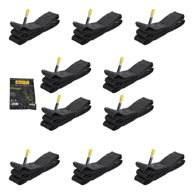 Dados do Produto: Câmara de AR para bicicleta aro 29 - Marca: Pirelli - Modelo: PE-29 - VÁLVULA: TIPO Schrader(Bico GROSSO) 48MM - Medida Compativel: 29x 1.75/2.35 - Peso: 210 Gramas cada unidade Atenção: Valor referente a 10 unidade. ---------------------------------------------- Dúvidas Frequentes ---------------------------------------------- - Tem estoque? Sim, temos estoque de todos nossos produtos anunciados. - Como faço para acompanhar do envio? Ao entrar na sua conta, nos detalhes de compra, estará disponível um código de rastreio onde poderá acompanhar qual a transportadora e o status de sua entrega. - Posso retirar o produto ? sim efetue a compra e nos comunique no chat que enviamos o endereço. " Não podemos enviar o endereço antes da compra. - Como realizo o pagamento? Pode realizar através dos meios que oferece. É rápido, seguro e não tem custo adicional, além de dar como opção as principais bandeiras de cartão. - Posso devolver o produto? O produto pode ser devolvido em até 30 dias, desde que esteja em sua embalagem original e sem sinais de uso. Qualquer outra dúvida, ficamos à disposição!