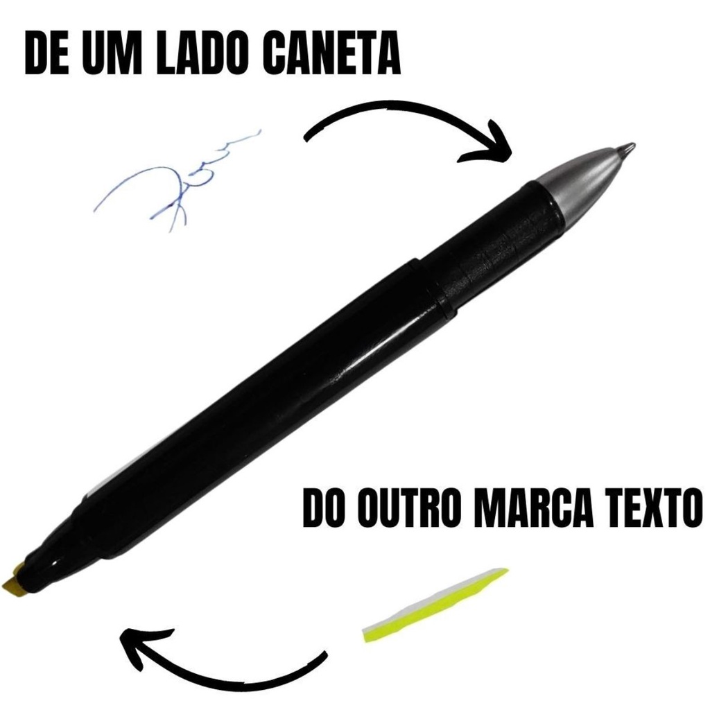 Caneta Plastica Esferografica Com Marca Texto Preta - M3000PR-10UN Caneta plástica esferográfica e marca texto, inteira colorida com detalhes preto. Características: • Caneta Preta • Cor da Tinta: Azul • Clip de metal, possui tampa de ambos lados. • Indiferente de cor, todos marca textos são amarelos e a tinta da caneta é azul. • Ótima para brindes Itens Inclusos: 01 Kit com 10 Canetas Dupla Marca Texto E Esferografica Preta - M3000PR-10UN "Compra Garantida" - Ao Comprar conosco a sua compra é 100% garantida, o seu dinheiro está seguro até a entrega.