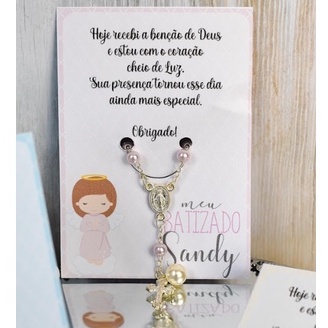 10 Cartões COM MINI TERÇO Lembrancinha de Batizado Eucaristia Comunhão - Envio Imediato