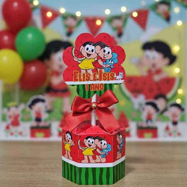 10 Centro de mesa Monica e Magali Kit Festa Chá Revelação Aniversário