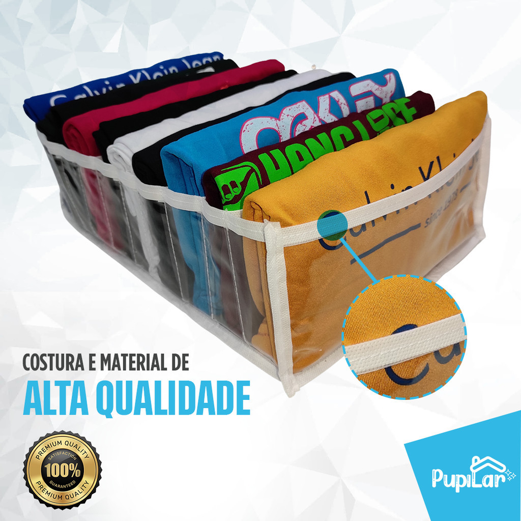 KIT COM 10 COLMEIAS ORGANIZADORAS TAMANHO G (10cm X 25cm X 35cm) PARA CAMISETAS Acabe com o estresse se livre da bagunça, as Colmeias Pupilar vão te ajudar! Com as nossas Colmeias suas roupas ficam super organizadas e faceis de visualizar. Chega de ter que procurar a suas roupas preferidas no fundo das gavetas. As Colmeias Pupilar são fabricadas em um Plástico Cristal Premium transparente, que dão excelente visibilidade na hora de procurar suas roupas. São flexíveis e muito resistentes. ENVIAMOS PARA TODO O BRASIL DESPACHAMOS SEU PEDIDO EM MENOS DE 24 HORAS FICHA TÉCNICA QUANTIDADE DE NICHOS: 10 DIMENSÕES: 10cm Altura X 25cm Largura X 35cm Comprimento COR DO VIÉS: Branco GARANTIA: 90 DIAS CONTRA DEFEITOS DE FABRICAÇÃO INDICAÇÃO DE USO: Camisetas, Blusinhas, Bermudas de tactel (masculina e feminina), Toalhas de Bebê, Fraldas de Bebê, Mantas, Cueiros e outras peças com o tamanho similar. DÚVIDAS FREQUENTES: P: Essa Colmeia G serve para calça jeans? R: Não, a Colmeia recomendada para calça jeans e bermudas é o modelo JEANS(GG) (20x25x40). P: Produto tem garantia? É possível devolver? R: Todos os nossos produtos dispõem de 3 meses de garantia contra defeitos de fabricação. Acesse nossa Loja e confira as novidades Se tiver alguma dúvida, entre em contato conosco através do chat, será uma satisfação ajudar. Ótimas Compras!