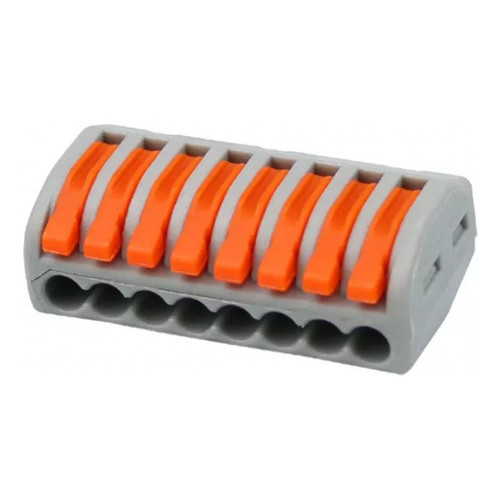 ***** MB UTILIDADES ***** Aplicações - Iluminação de fabricação OEM - Residencial - Caixas de junção - Paineis de controle - Sistemas de segurança/alarme - Sistemas de pré-fiação - Retrofit de iluminação Os conectores de emenda conectam fios e cabos rígidos, semirrígidos e flexíveis de até 4mm. Graças a tecnologia de conexão a mola você não precisa se preocupar com manutenções! Dentre as vantagens em se utilizar esse tipo de conector pode-se citar o fato dele conectar e isolar ao mesmo tempo, ser de fácil manuseio, podem ser reutilizados facilmente e não enferrujam. Especificações: - Flexível: 0,08mm - 4mm2; - Rígidos e semirrígidos: 0,08 - 2,5mm2; - Tensão máxima de operação: 400V; - Intensidade de corrente elétrica: 32A; - Temperatura máxima de operação: 85C; - Grau de proteção: IP 20; Itens Inclusos : 10 - Conector 8 vias
