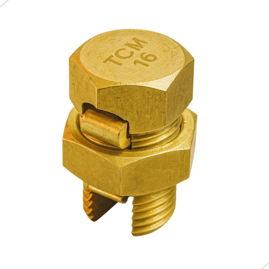10 Conector Split Bolt 16mm Latão Sistemas Aterramento Emendas Elétricas Parafuso Fendido Cabo e Fio