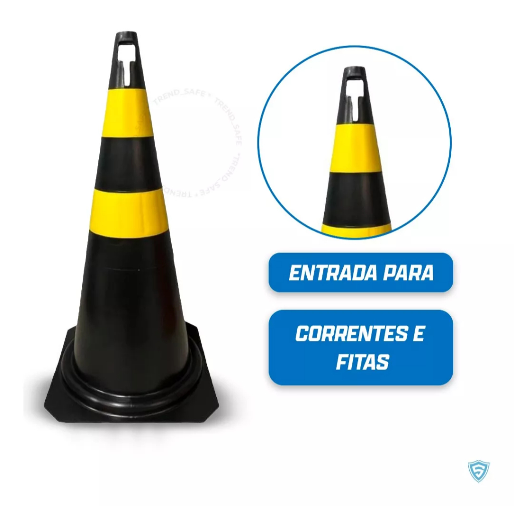Seja Bem Vindo á Safe Brasil ! Kit C/ 10 Cone De Sinalização organizada em tópicos: O cone de sinalização de 75cm é indicado para sinalização de vias internas e externas, estacionamentos, sinalização de obras em geral, orientação de trânsito de veículos e pessoas. Possuem alta resistência, ótimo acabamento e fendas para passagem de correntes e fitas. Tipo: Não refletivo Confeccionado em PP (Polipropileno Injetado) Medidas: 36x36x75 cm