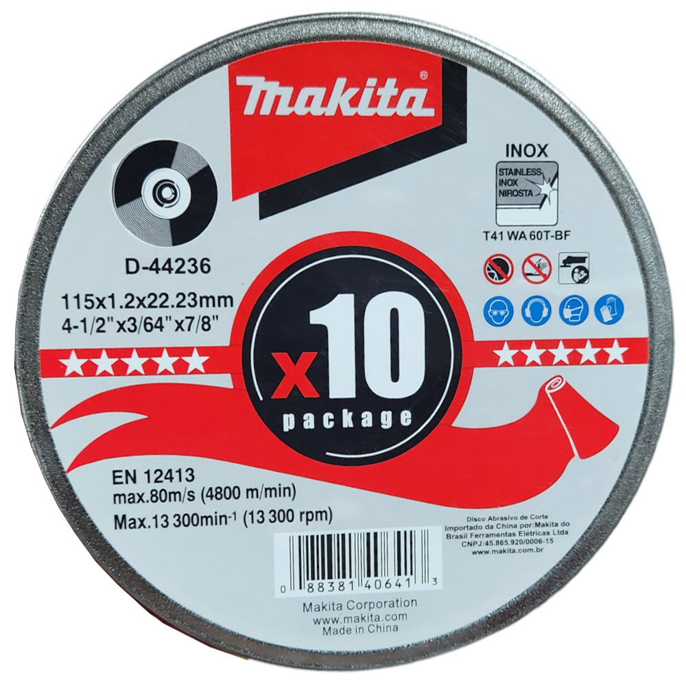 10 Disco Fino Para Corte Inox 115mm Esmerilhadeira D-44236-10 Makita