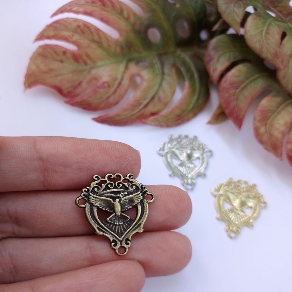 Lindo entremeio com Divino Espirito Santo para Montagem de Terços e Artesanatos Religiosos. Entremeio delicado, que apresenta o Divino Espirito Santo ao Centro, levando ainda mais significado para o seu trabalho religioso. " O Espírito Santo presta testemunho da verdade" Medidas: - Altura: 2.5 cm - Largura: 2.0 cm Banho: Ouro Velho