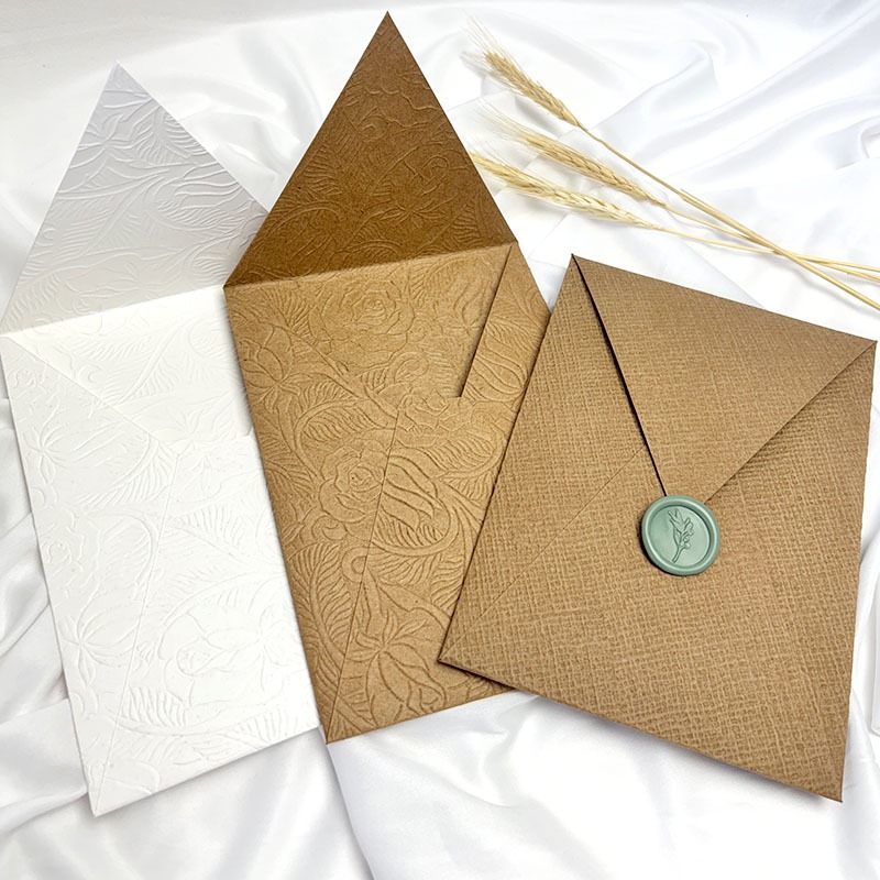 10 Envelope com textura para convite bico Vertical 15 x 21 cm – Kraft Linhão ou Floral Papel 300g