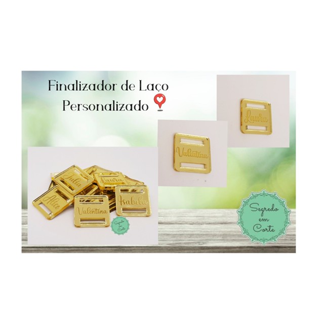 10 Finalizadores/passante para laço ou elástico em acrílico espelhado com nome personalizado - 1,8cm