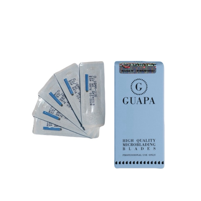 Descrição Lâminas para uso profissional em procedimentos de microblading, utilizadas para maquiagem definitiva. Instrumento para implantação de pigmentos na epiderme. USO PROFISSIONAL. Composição: Aço inoxidável 304H. PRECAUÇÕES O transporte e o armazenamento deve ser feito de maneira que mantenha intacta a embalagem e seu conteúdo. Caso haja rompimento da embalagem, descarte o produto. Armazenar em temperatura ambiente protegido da umidade e luz solar. Produto estéril, esterilizado por Óxido de Etileno. Proibido reprocessar, uso único. REGISTRO ANVISA: 81652919043