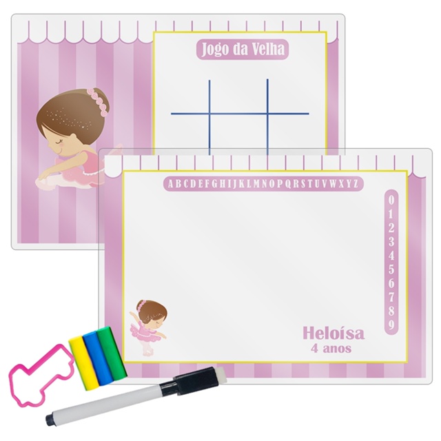 10 Lembrancinhas Festa Infantil Lousa Mágica + Caneta + Kit Massinha Personalizada Tema Bailarina