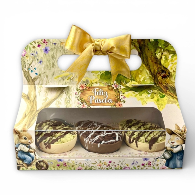 10 Maletinhas para 3 Ovos de Colher de 50g - Coleção Páscoa da Colheita--Presente.
