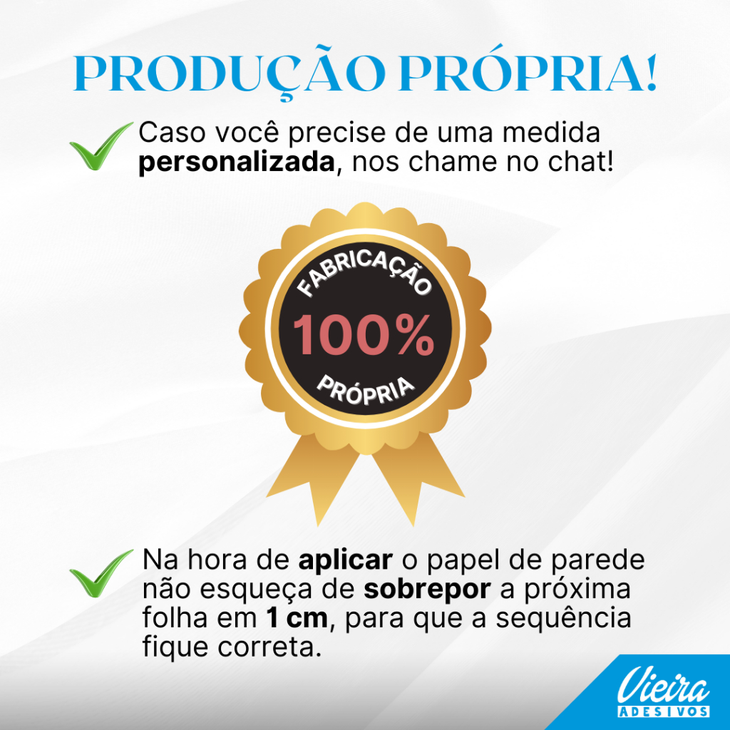 ADESIVO LAVÁVEL PARA PAREDES METRAGEM 1 metro = 1 rolo de 1,00m x 0,50m sem emendas (0,50m² total) 2 metros = 2 rolos de 1,00m x 0,50m sem emendas (1m² total) 3 metros = 3 rolos de 1,00m x 0,50m sem emendas (1,5m² total) e assim por diante. Dê vida ao seu ambiente! Adesivo autocolante (não precisa de cola) e totalmente sem cheiro! Instalação muito simples e prática! Você pode aplicar em: - Revestimentos (azulejo liso, granito, mármore) - Paredes lisas (gesso, massa corrida, drywall) - Madeiras (MDF, compensado, portas, armários ou superfície lisa) - Área Externa (pouca durabilidade, aplicar em superfície lisa) - Eletrodomésticos (geladeira, fogão, etc) - Vidros (lisos e limpos) Onde você NÃO pode aplicar: - Paredes (rústicas, reboco, blocos, tijolos, sem pintura, grafiato, com textura) - Madeiras (molhadas, inchadas, descascando, porosas) - Revestimento (antiderrapante, grossos, com textura) - Parede com mofo ou com umidade não adere! OBSERVAÇÃO: calcule corretamente as medidas da parede pois pode ocorrer uma mudança de cor de um lote para outro! Peça entre 10% a 15% a mais do tamanho medido para a instalação. Especificações: - Papel de parede adesivo autocolante liso sem relevo; - Impressão de alta resolução; - Faça a limpeza com pano úmido e detergente neutro; - Totalmente lavável, pode ser utilizado em: banheiro, cozinha, lavanderia. - Resistente a temperatura, pode ser utilizado próximo ao fogão. Não propaga fogo! DURABILIDADE: 5 anos - áreas internas 1 ano - áreas externas - ACOMPANHA MANUAL DE INSTALAÇÃO! APLICAÇÃO: Limpe o local com um pano úmido, certifique-se de retirar todo o pó da superfície para melhor fixação do papel de parede.