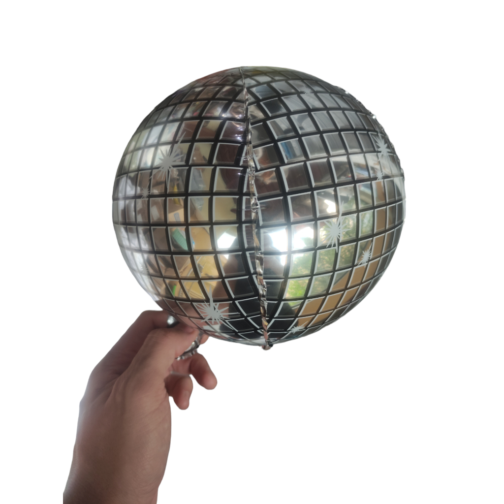 10 Mini Balão Metalizado Prateado Quadriculado Orbz Discoteca Globo 4D 10 Polegadas 25cm Decoração