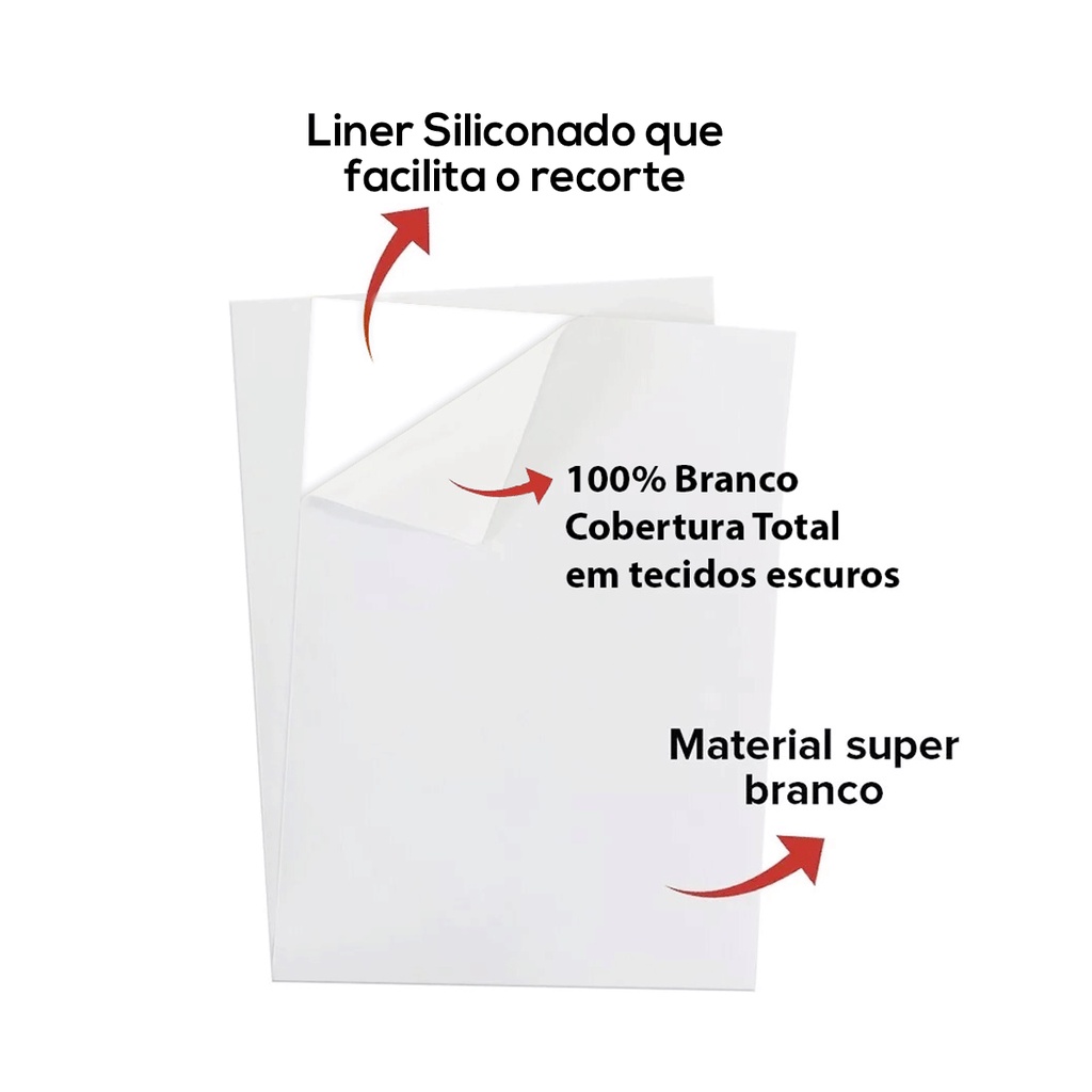 NOVO LINER COM QUALIDADE SUPERIOR - NÃO GRUDA O OBM Power Film® Toque Zero é o melhor fundo branco sublimático do Brasil, permitindo impressão direta em impressoras e plotters com tinta sublimática. Sua composição especial de poliéster com liner de papel oferece durabilidade ultra resistente, testada até 50 lavagens. Características Técnicas: Material: Poliéster especial com Liner de papel Tamanho: A4 Durabilidade: Testado até 50 lavagens Diferenciais do Produto: Impressão direta em impressoras e plotters sublimáticas. Leve, macio e elástico. Fundo Sublimático para tecido sintético, misto e em algodão. Pode ser cortado em plotters de recorte, incluindo Silhouettes® e ScanNCut Brother®. Cola super potente que não solta. Onde Aplicar: Camisetas escuras e coloridas, Bonés, Calças, Jeans, Moletons. Como Aplicar: Utilize uma prensa térmica. Como Recortar: Com uma plotter de recorte ou com uma tesoura. Como Imprimir: Utilize qualquer impressora com tinta para sublimação. Como transferir - impressão direta: Pré-aqueça o tecido para retirar a umidade. Regule a prensa com pressão média e a 205°C. Retire o liner marrom e aplique sobre o tecido por 35 segundos, protegendo com um papel sulfite. Retire o papel sulfite. Pronto, aplicação concluída!