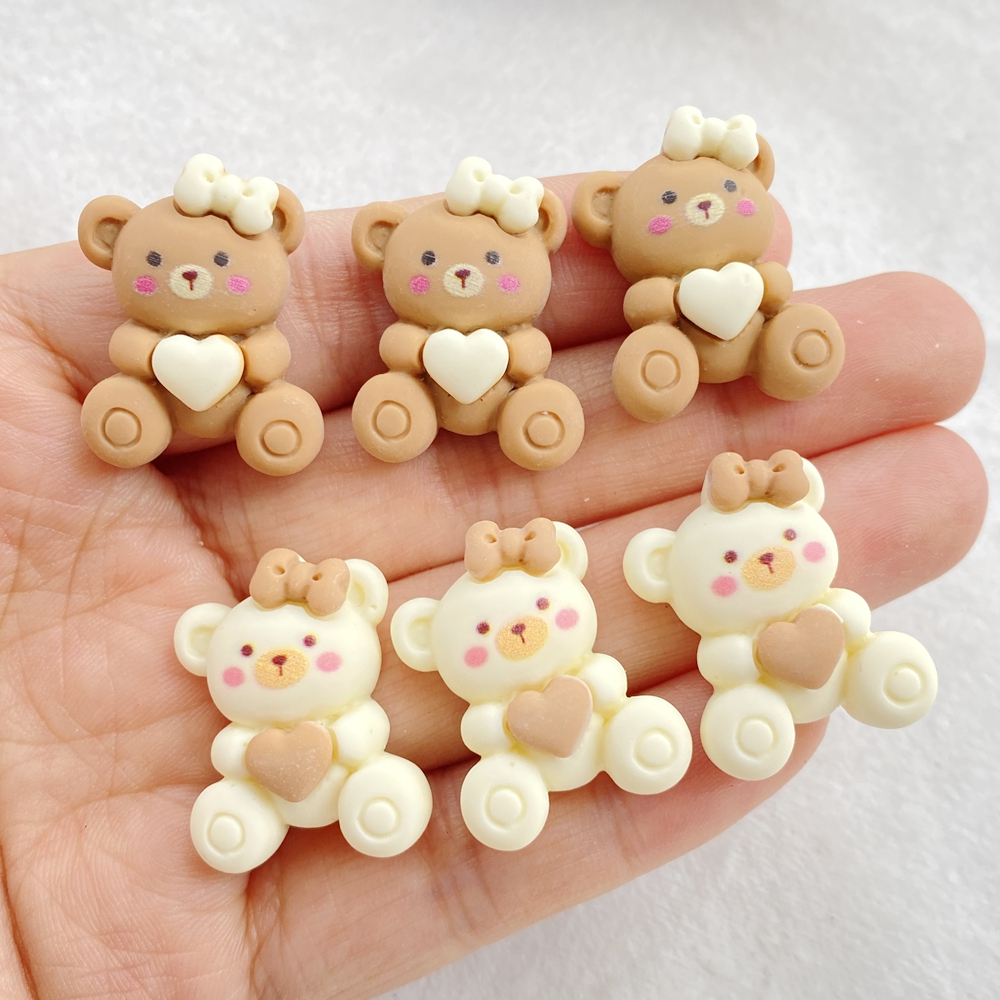 10 peças de acessórios de artesanato de urso em forma de coração de desenho animado fofo