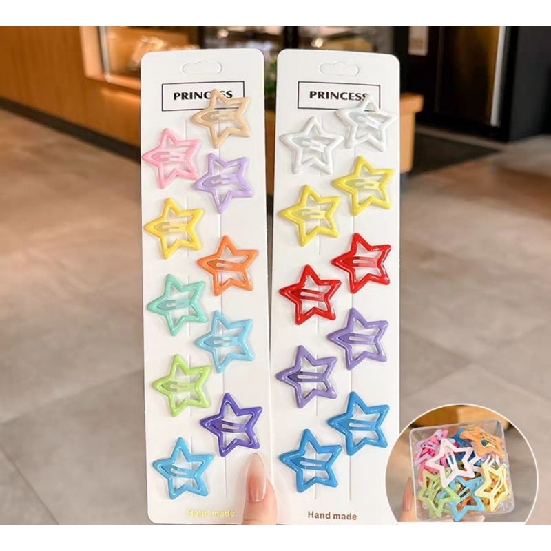 10 Peças De Grampos De Cabelo Com Estrela Oca De Cores Mistas , Acessórios Doces E Fofos Cor aleatoriamente