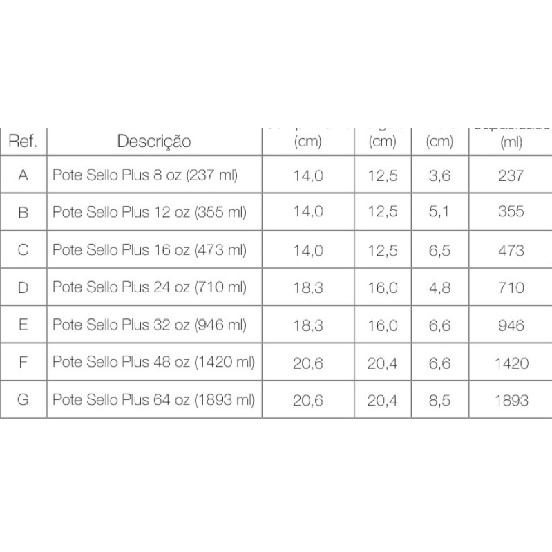 10 pote darnel sello plus para alimentos com tampa transparente pet escolha as medidas na variação do anúncio medidas 237ml/355ml/473ml/710ml/946ml/1420ml/1893ml