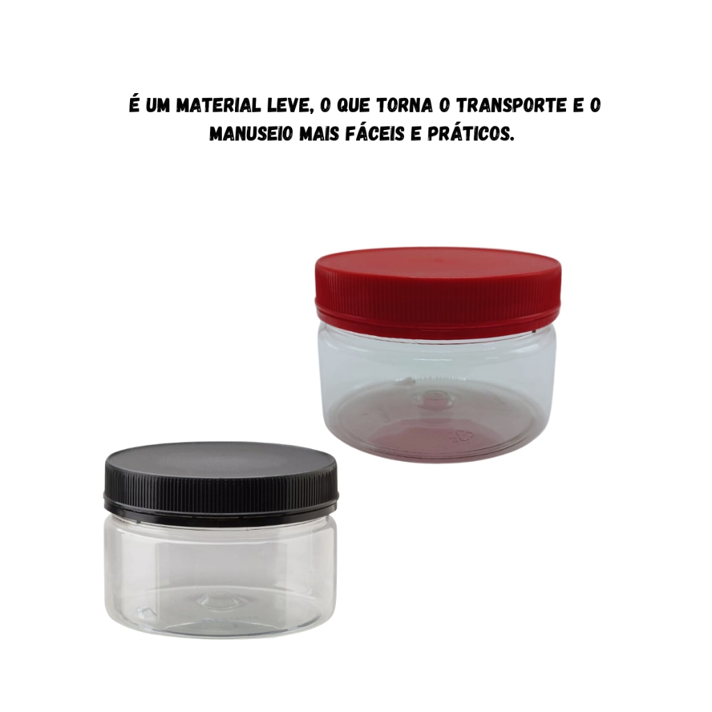 POTE PET CRISTAL C/ TAMPA LACRE Material: PET Pote transparente com alta qualidade que permite uma excelente visualização do seu produto. Tampa com lacre que oferece segurança ao seu produto *** VOLUMETRIA DO POTE:*** POTE 250 GR = 250 ML PARA PRODUTOS COM A MESMA DENSIDADE DA ÁGUA Selecione a cor de tampa desejada, nossas opções: BRANCA PRETA VERMELHA Medidas do pote: Altura com tampa 6,0 cm Diâmetro da base 9,3 cm Diâmetro da boca 8,7 cm Medidas para rótulo: Altura 3,0 cm - Circunferência 28,9 cm INFORMAÇÕES IMPORTANTE: * Selecione a cor de tampa desejada no campo cores de tampa * A Nota fiscal é emitida automaticamente pelo sistema para os dados já cadastrados. Se precisar de uma nota para outro nome/razão social , você precisa fazer novo cadastro com as informações antes da compra. * Confirme o endereço antes de finalizar sua compra, pois após o pagamento efetuado não conseguimos alterar. * Horário de atendimento: Segunda á sexta-feira - 07:00 ás 17:00 hs. * Os potes seguem vazios e sem personalização * As imagens são ilustrativas